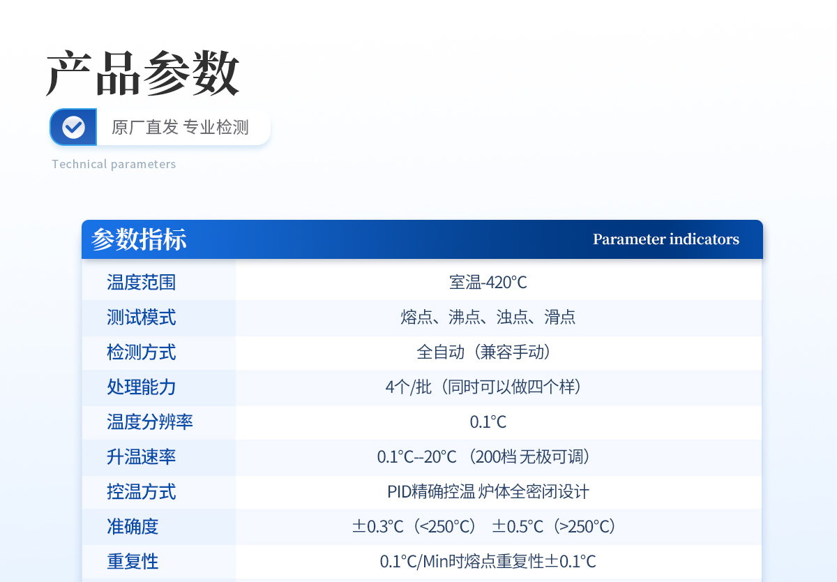 | 熔点仪在化学工业、医药研究中据有重要地位,是生产食品、药物、香料、染料及其他有机晶体物质的必备仪器。 |